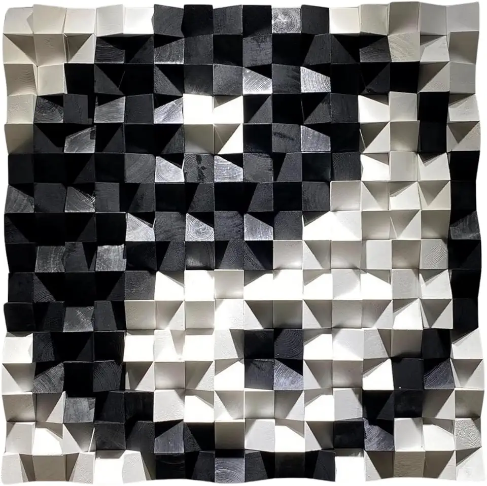 Yin and yang Wooden Painting Wall Art, 3D Mosaic Wood Painting, Sculpture Art, Huge Geometric Wood Wall Art, Wood Block Art Reclaimed Wooden Wall Art, Home Decor (80x80 cm)