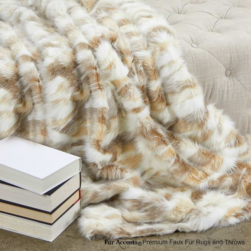 Fur Accents Sumptuous Luxury Faux Fur Throw Blanket - Designer Quality Made in America (58''x80'', Platinum Tibetan Fox)