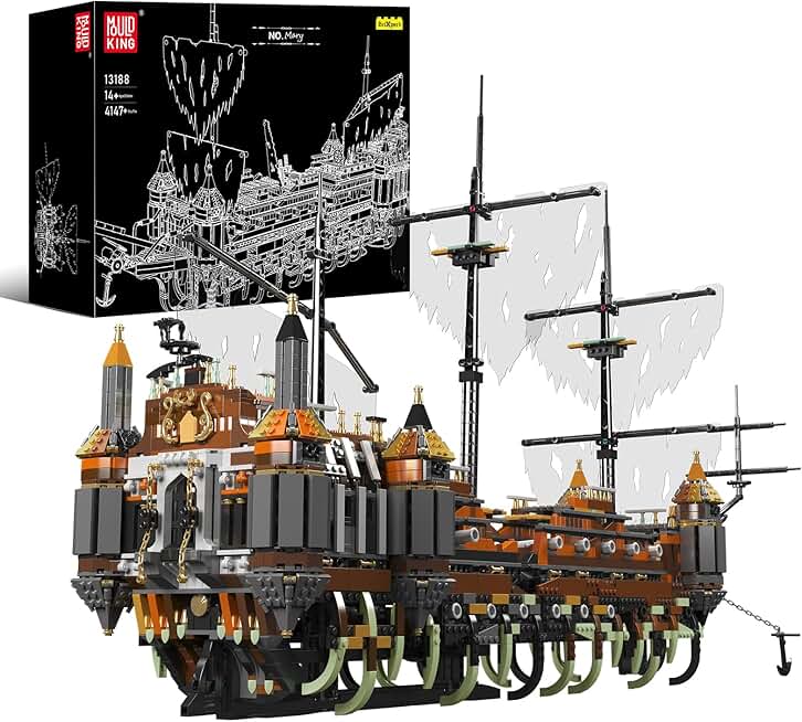 Mould King 13188 Pirate Ship Building Blocks Kits, MOC Silent Mary Sailboat Model Construction Set to Build, Creative Gift for Kids Age 8+/Adult Collections Enthusiasts(4147 Pieces)