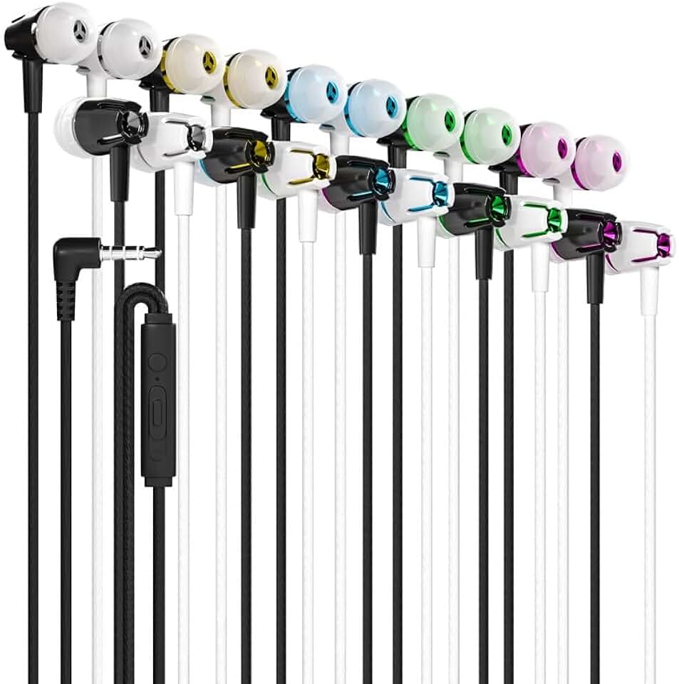 Maeline Bulk Wired Earbuds in Ear, Noise Isolating Headphones with Microphone, 3.5mm Jack Plug, Mic and Volume Control, Stereo Bass, Tangle-Free Cord for iPhone, Android, PC, Laptop - 200 Pack
