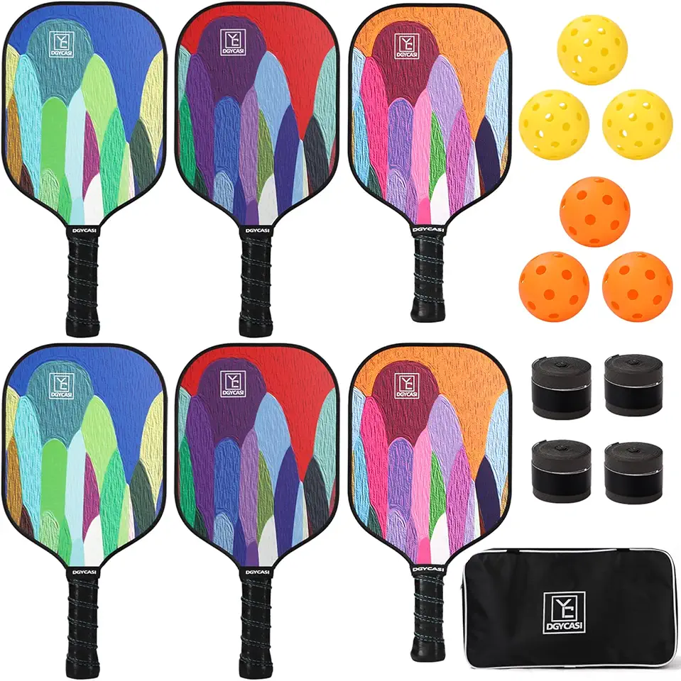 Graphite Pickleball Paddles Set of 6, 2024 USAPA Approved, 2 Kids & 4 Adult Paddles, Fiberglass Surface (CHS), Polypropylene Lightweight Honeycomb Core, 6 Pickleball, 4 Replacement Soft Grip + Bag