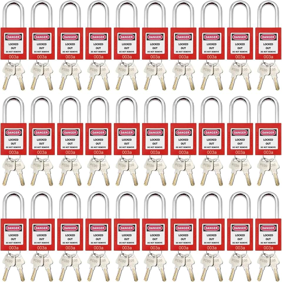 SAFBY Lockout Tagout Lock 30pcs Key Alike OSHA Loto Safety Same Padlocks for Lock Out Tag Out Stations and Devices Red (30 PCS Same Number)
