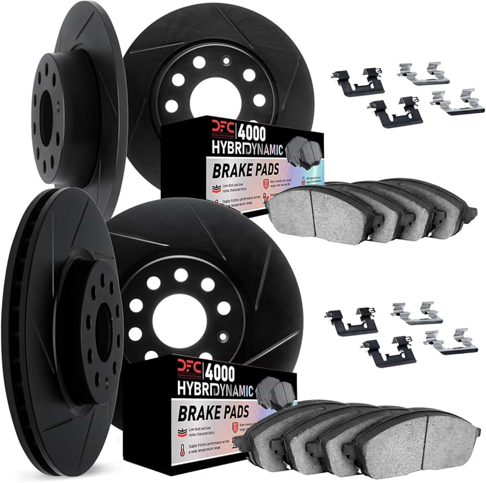 Dynamic Friction Company Front and Rear Brake Rotors Kit Slotted Black | 4000 HybriDynamic Brake Pads includes Hardware | Fits 2004-2006 Subaru Baja