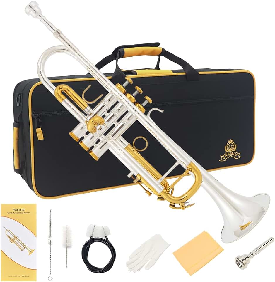 Bb Standard Trumpet Set, Brass Adults Play Western Wind Instruments for Beginners or Advanced Students, with Hard Case, Cleaning Kit, 7C Mouthpiece, Cloth and Gloves (Cupronickel)
