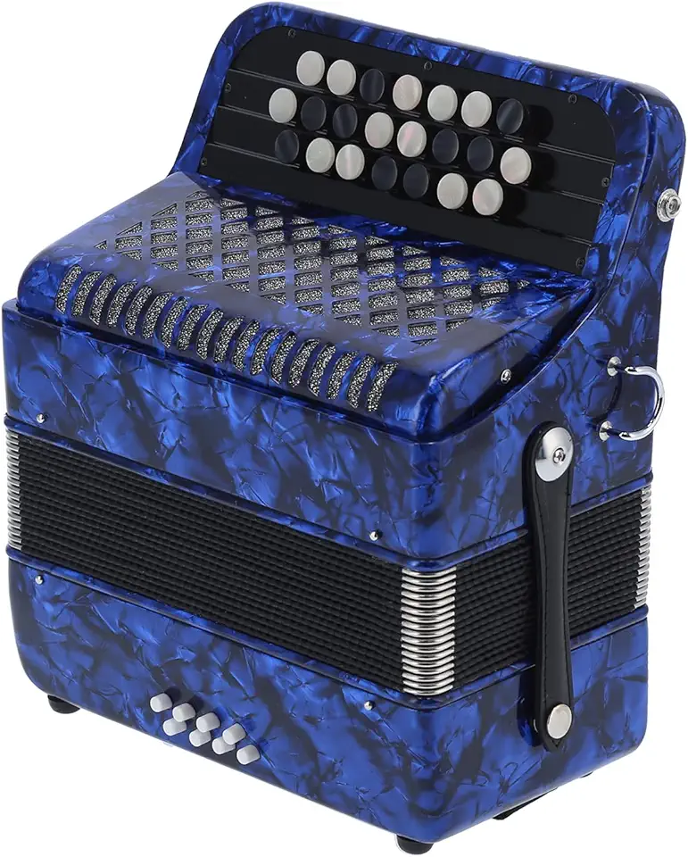 22 Key 8 Bass Accordian, Professional Elegant Ergonomic More Stable Intonation Piano Accordion with Storage Bag, Hand Polished Button Reed Educational Musical Instrument for Beginners Students(Blue)