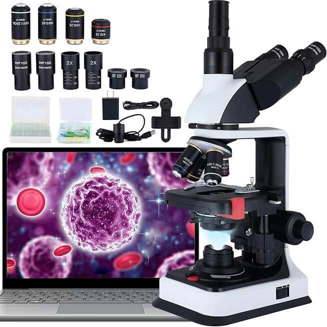triocular microscope 40X-2500X magnification,adult microscope, with camera, LED microscope, suitable for student Children adult laboratory education science Doppelt Tisch