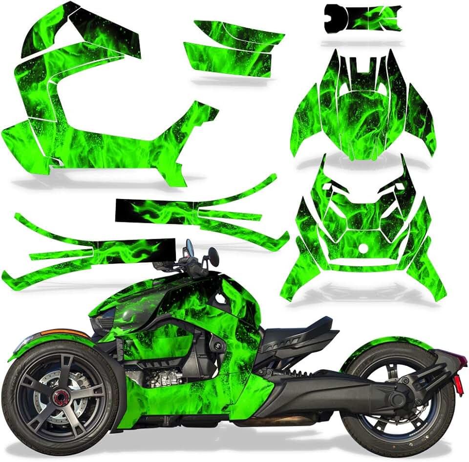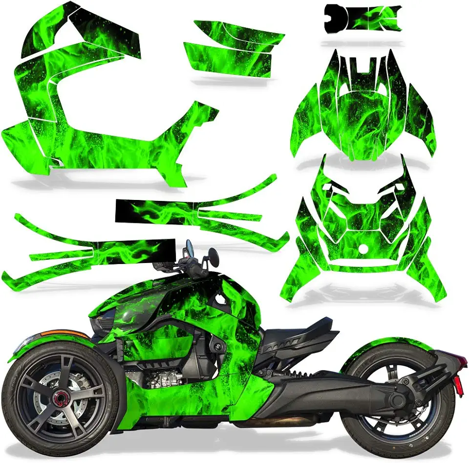 Roadster Graphics Full kit Sticker Decal Compatible with Can-Am Ryker 2018-2022 - Green Flames