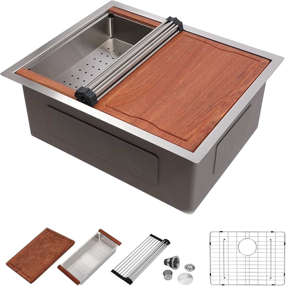 Dcolora 23 Undermount Small kitchen Sink Workstation 16 Gauge Stainless Steel Prep Wet Bar Sink with Ledge Deep Single Bowl Utility Sink, Round Corner, 23"x19"x10", DC-U7705