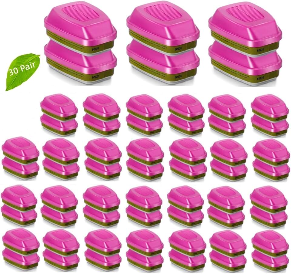 30 Pairs 60926 Filter, Respirator Filter 60926 Cartridges Against Organic Vapors, Acid Gases, Ammonia Methylamine, Formaldehyde, Dust Used in 6200 6502 6800 Respirator Mask