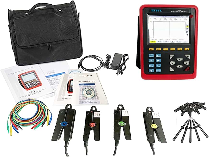 POA-3H Power Quality Analyzer Meter Multifunction Monitor with 4 PCS 10A Sharp Nose Pliers Current Sensor Large LCD Color Screen Display
