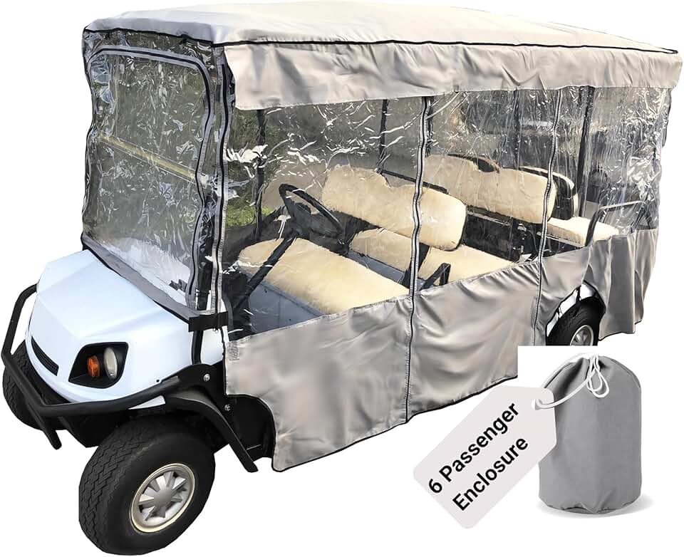 FORMOSA Premium Tight Weave Golf Cart Driving Enclosure 6 Seater Passenger EZGO 4 + 2 Bench Cover for Protection from the Elements Strong YKK Door Zipper - 119"L x 44"W x 63"H