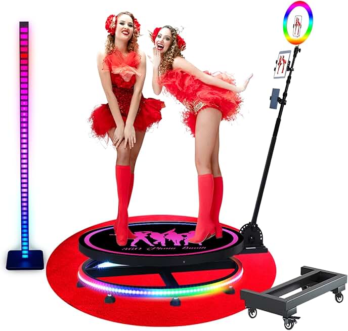 360 Photo Booth Machine with Battery Pack & Flight Case for Parties,360 Slow Motion Camera Booth with Deluxe Suit & Custom Magnetic Logo, Control by Remote or APP (26.8 in)