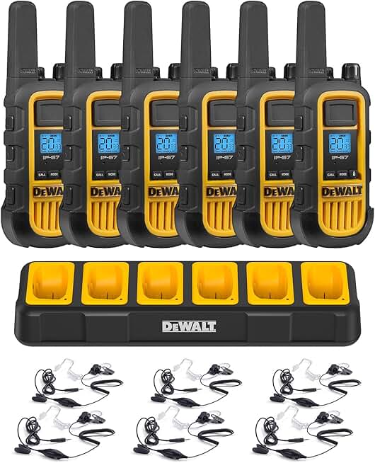DEWALT DXFRS800 Bundle 2W Walkie Talkies Heavy Duty Business Two-Way Radios, 6 Pack with 6 Headsets Plus Gang Charger (DXFRS800BCH6-SV1)