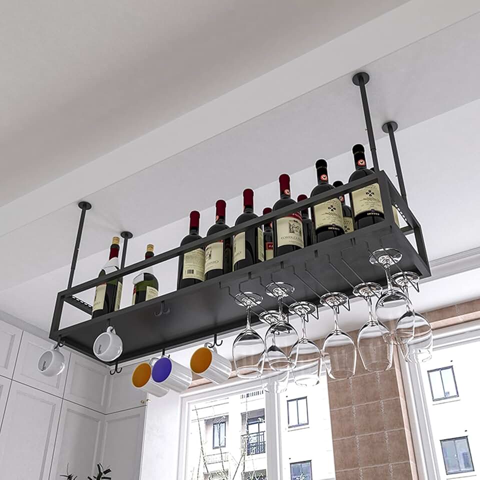 Ceiling Hanging Bar Unit Wine Rack Ceiling Hanging Wine Bottles Racks Wall Mounted Stemware Champagne Glasses Display Holder for Under Cabinet, Kitchen, Bar, Restaurants - Adjustab