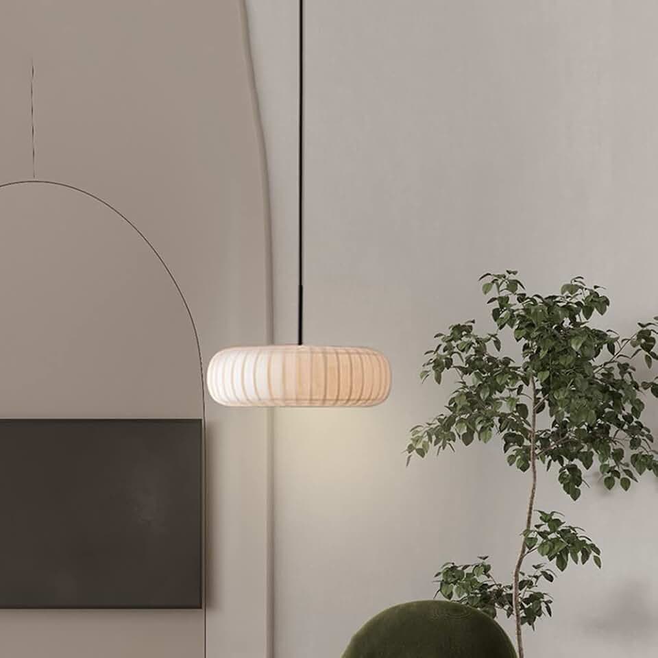 Modern Pendant Light Minimalist Chandelier Round Fabric Suspension Lamp Shade, Dining Room Hanging Lighting Fixture White Drop Ceiling Lamps for Living Room Bedroom