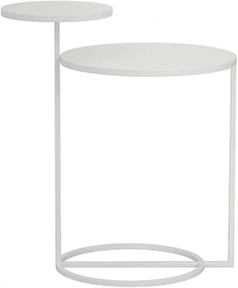 Iron Home Coffee Table, Modern Minimalist Multifunctional Living Room Sofa Round Small Coffee Table Bedroom Bedside Table (Color : White)