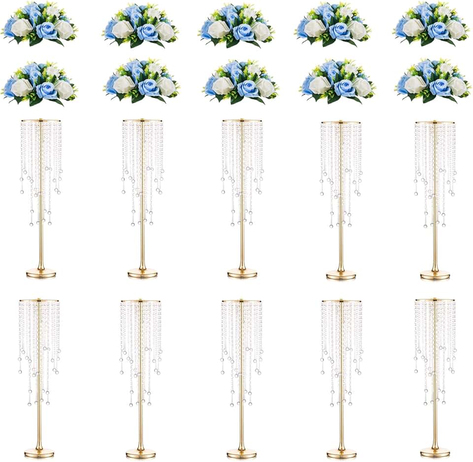 Inweder Wedding Flower Balls for Centerpieces - 10 Pcs Artificial Flower Ball Arrangement Bouquet, Fake Flowers Rose Balls for Weddings, Birthday Party, Valentine's Day, Home Decor, Blue & White