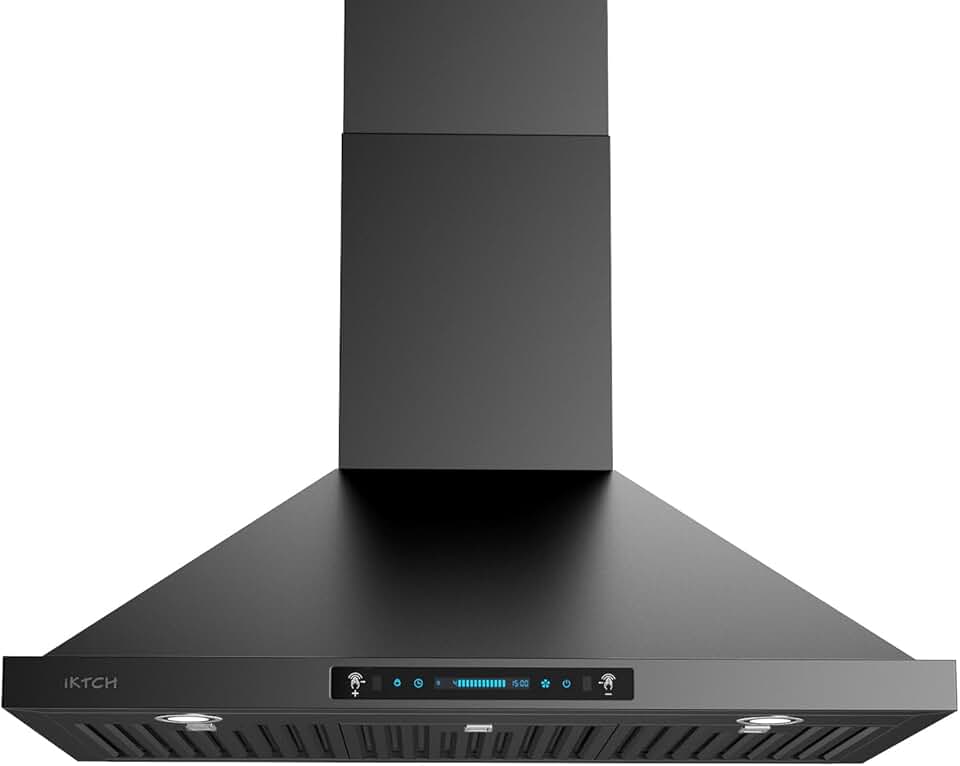IKTCH 36 inch Black Wall Mount Range Hood, 900 CFM Ducted/Ductless Stainless Steel Vent Hood with Gesture Sensing & Touch Control Switch Panel, 2 Pcs Adjustable Lights(IKP02-36-BSS)