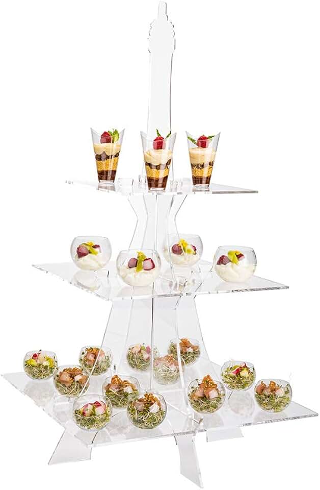 Restaurantware Clear Tek 14.6 x 27.2 Inch Dessert Tower Stand 1 Eiffel Tower Cupcake Holder For Parties - 3-Tier Sturdy Clear Acrylic Wedding Cupcake Stand Serve Appetizers or Hors D'oeuvres