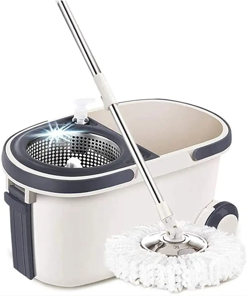 Mop and Bucket, with 2 Microfiber Pads for Floor Cleaning, Rotating Mop, Mop Bucket, Hand-pressing Easy-to-use Household Wiper Set, Portable Corner Flat Bottom