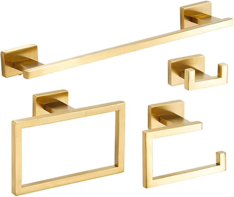 OAKITA Black Gold Sliver Bathroom Hardware Set Stainless Steel Towel Holder Roll Paper Holder Towel Ring Robe Hook Bathroom Accessories,Gold 4pcs Set