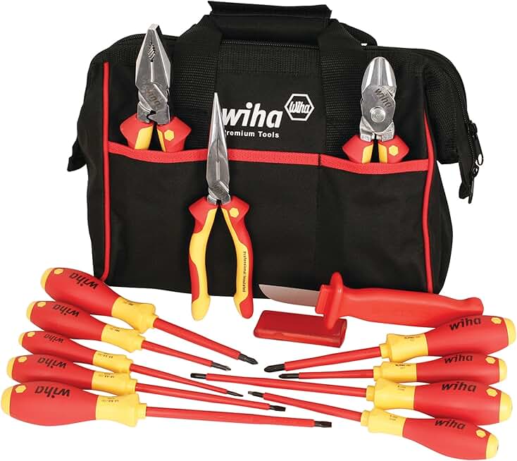 Wiha 32878 Insulated Tool Set with Pliers, Cutters, Xeno, Square, Slotted & Phillips Screwdrivers in Tool Box, 13-Piece