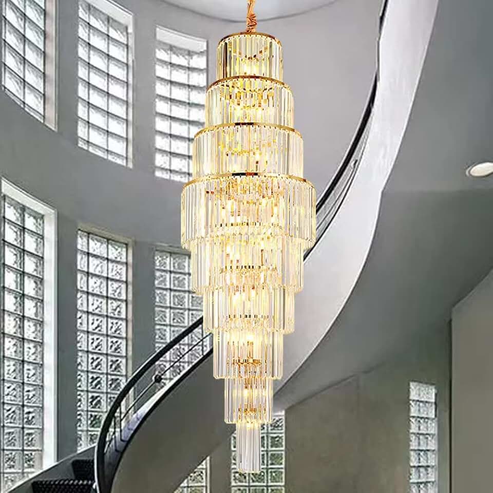 Modern Villa Stairs Crystals Pendant Lamp Fixture Penthouse Floor Large Chandeliers Big Lobby Duplex House Lamp for Stairway Living Room Dining Room Restaurant (Dia80cm x H240cm)