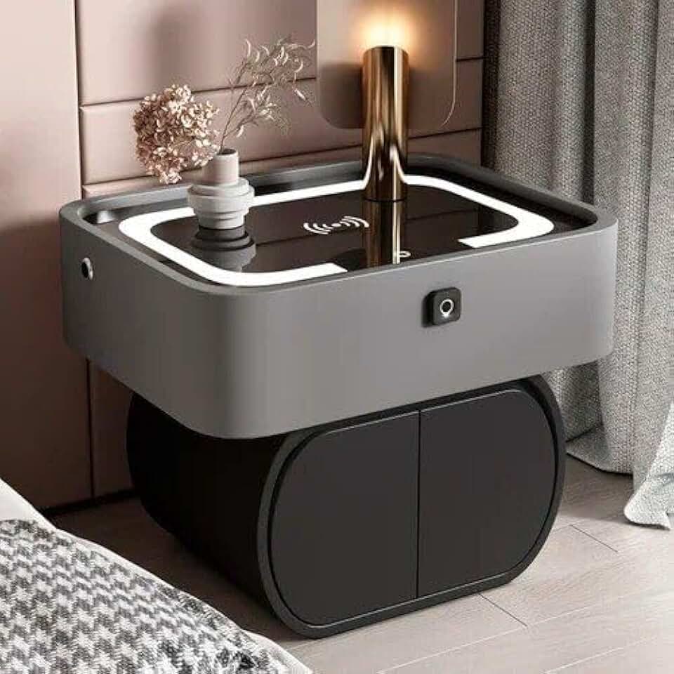 Modern Moroccan Minimalist Wooden Nightstand Dark Grey
