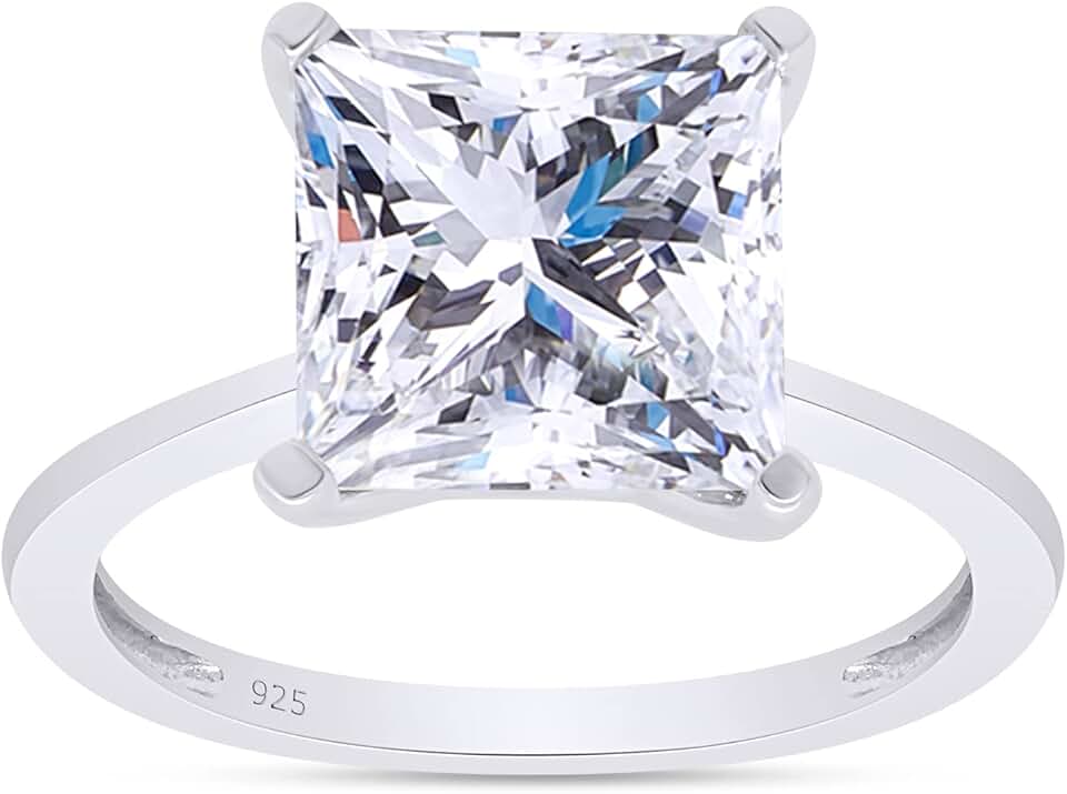 SAVEARTH DIAMONDS 3 1/2 Carat 9MM Princess Cut Lab Created Moissanite Diamond Solitaire Engagement Ring In 14K Gold Plated 925 Sterling Silver (VVS1 Clarity, 3.50 Cttw)