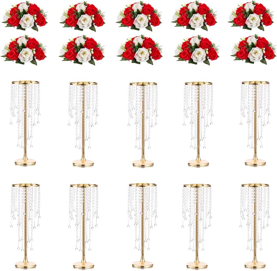 Inweder Wedding Flower Balls for Centerpieces - 10 Pcs Artificial Flower Ball Arrangement Bouquet, Fake Flowers Rose Balls for Weddings, Birthday Party, Valentine's Day, Home Decor, Red & White