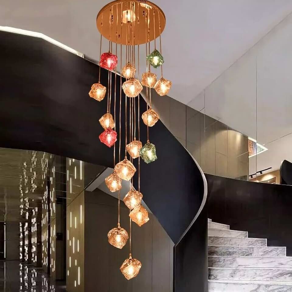 LED Color Glass Chandeliers Living Rooms Rotating Stairs Pendant Lighting Decor (D40 H120CM)
