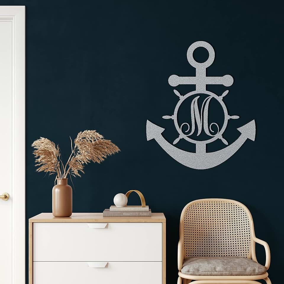 Metal Wall Decor, Custom Personalized Anchor Monogram , Home Living Room Decor, Wall Sign, Metal Wall Art, Interior Decoration, Indoor Outdoor Hangings, Silver (63x75cm)