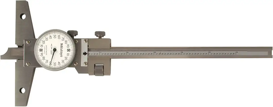 Mitutoyo 527-311-50 Dial Depth Gauge with Fine Adjustment, Caliper Type, 0-6" Range, 0.001" Graduation, +/-0.001" Accuracy