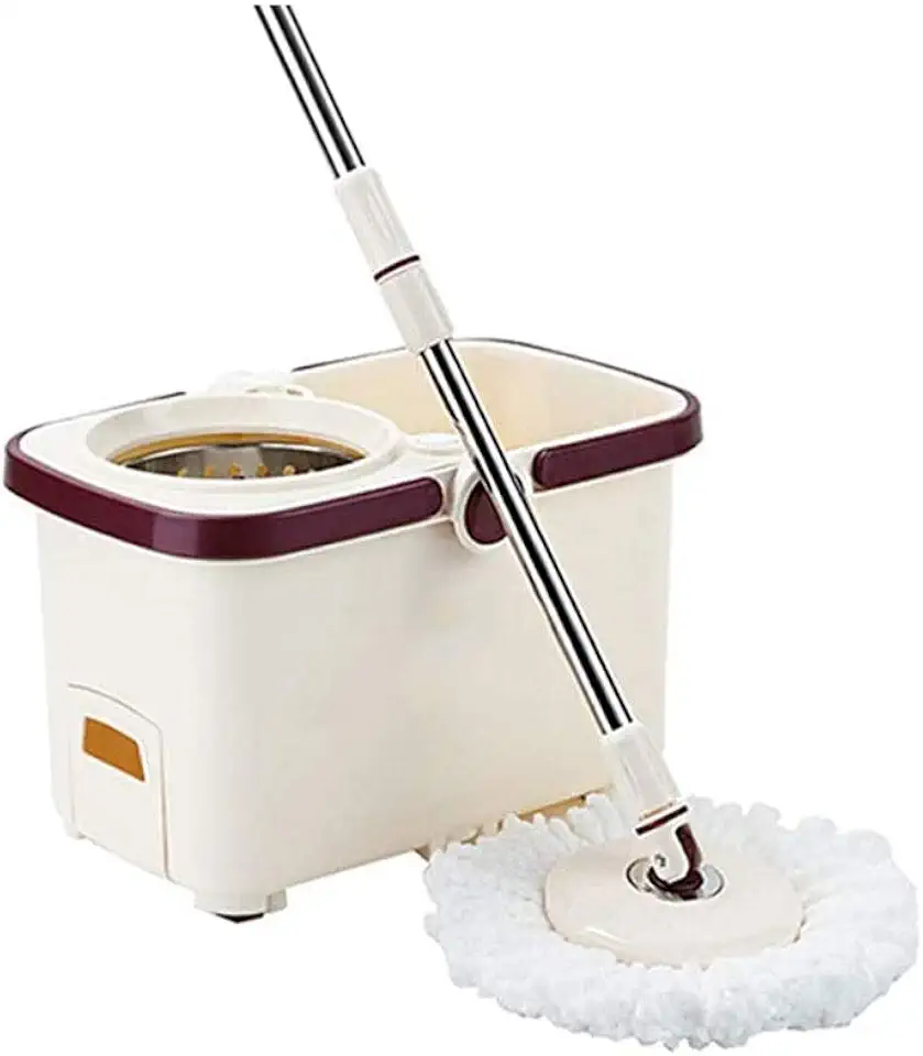 Spin Mop, Stainless Steel Adjustable Handle with 2 Microfiber Mop Heads with Detergent Dispenser for Floor Cleaning