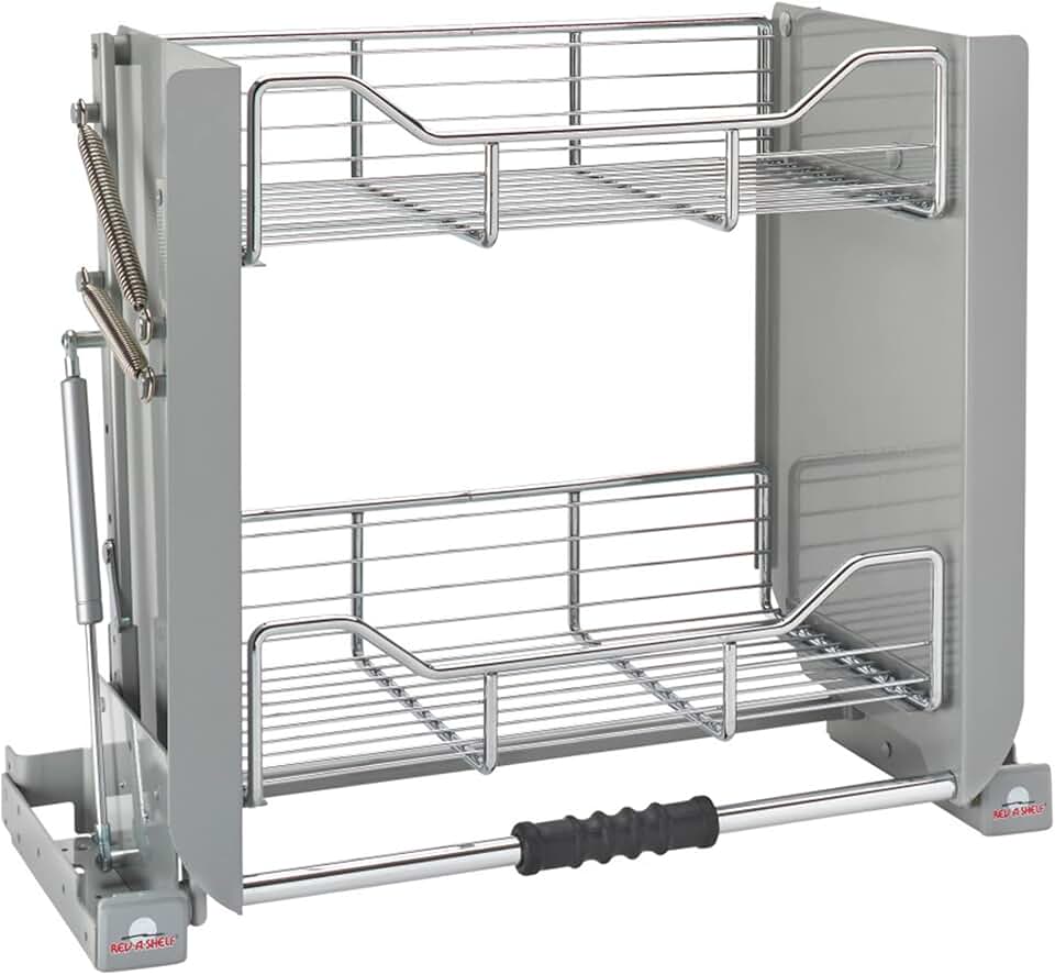 24" Pull Down Heavy Duty Shelf Organizer for Tall Kitchen/Bathroom Cabinets, Dual Tier Wall Mounted Pantry Storage, Chrome, 5PD-24CRN