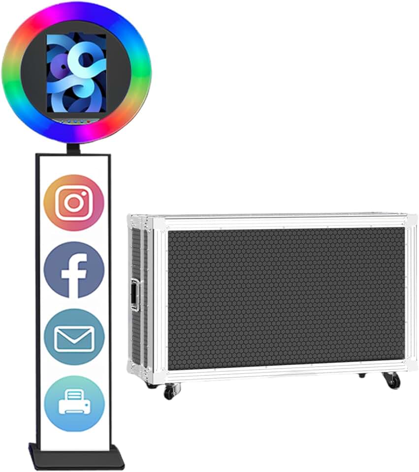 Portable Photo Booth for iPad,Metal Shell Selfie Station photobooth Machine,RGB Ring Light,Free Custom Logo,Remote Control,for Parties,Wedding,with Flight Case (Black, Machine)