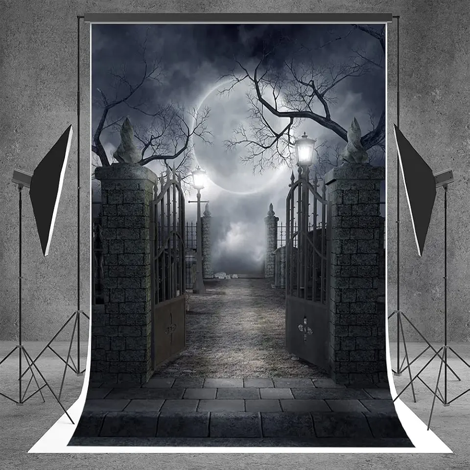 10x20ft Door of Hell Bigh Moon Halloween Backdrops Stone Wall Dark Fog Scary Night Photography Backdrop Fabric Party Background