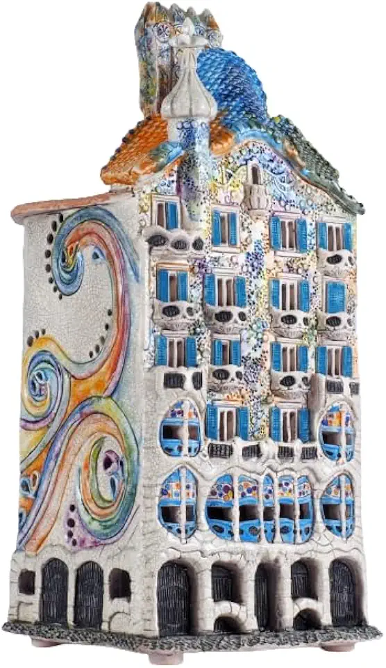Ceramic Art Tealight Candle Holder Room Decoration Handcrafted Collectible Miniature Light House Casa Batllo by Antoni Gaudí in Barcellona, Spain E250N*
