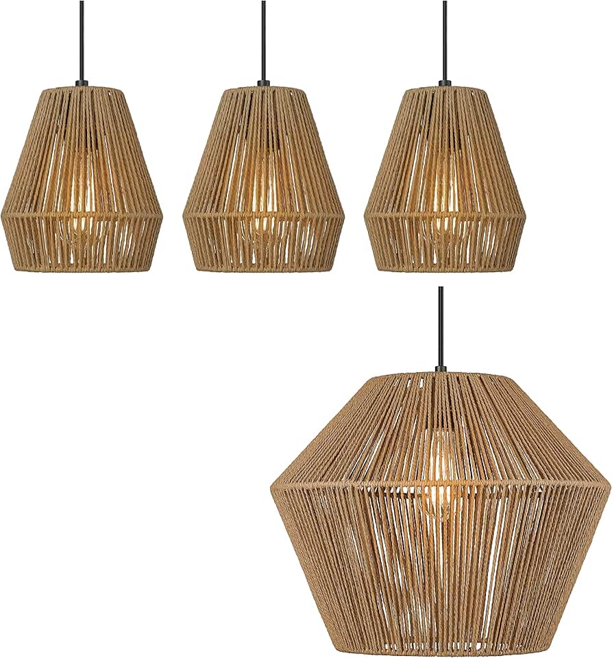 ELYONA 3 Pack 7” Modern Boho Woven Pendant Lights & 17" Woven Chandelier for Bedroom, Kitchen, Dining Room, Living Room, Entryway