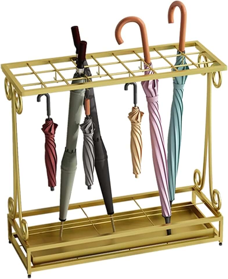 Umbrella Stands Iron Umbrella Stand with Hooks and Drip Tray, Commercial and Home Anti-Rust Umbrella Stand, Can Hold Long Short Umbrella(Size:63X24X66CM)