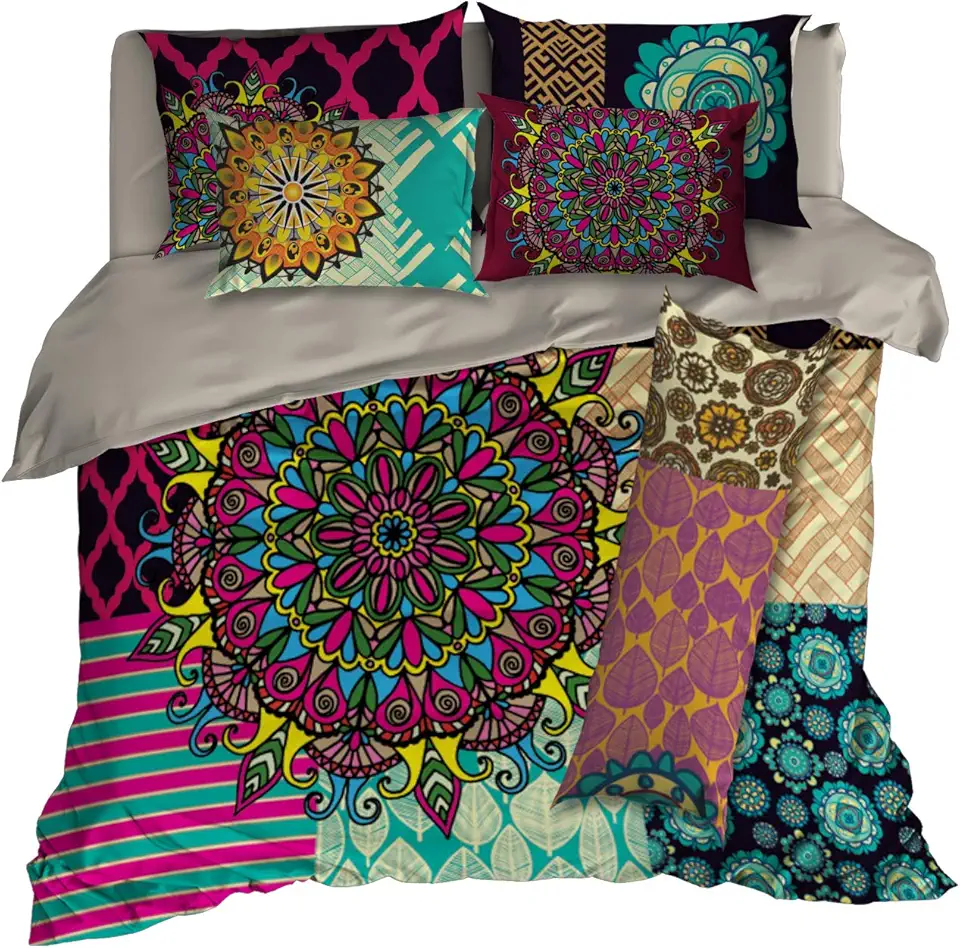 Bohemian Pattern Duvet Cover, Colorful Mandala Bedding Sets, Motley Bed Cover, B-17 (Queen Set 95"x87")