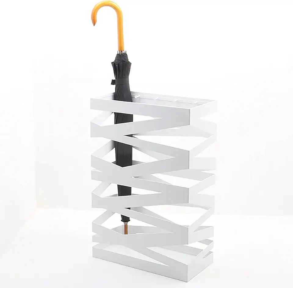 Umbrella Stands,Geometric Style Umbrella Rack with 4 Small Hooks, Modern Hollow Umbrella for Hallway/Entryway/Apartment/Hall/White