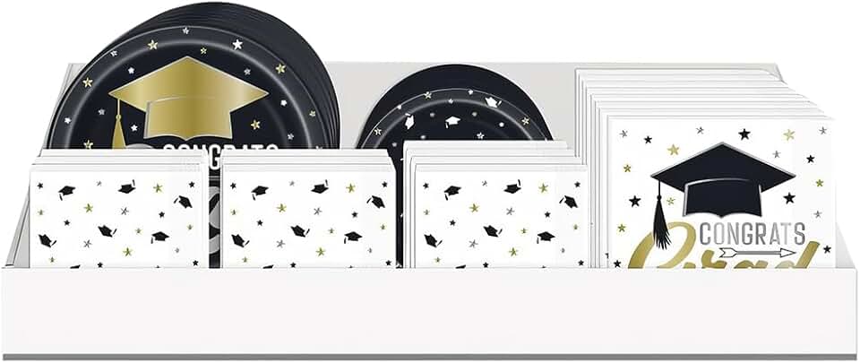Black and Gold Stars & Caps Graduation Tableware Kit (Pack of 80) - Durable & Vibrant Party Supplies - Perfect for Festive Parties, Family Gatherings & More