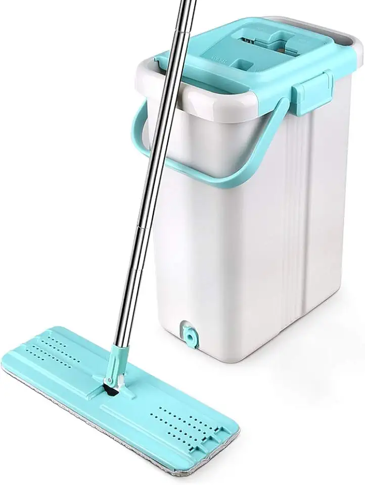 Flat Floor Mop and Bucket Set for Home Floor Cleaning Home Kitchen Cleaner Microfiber Pads