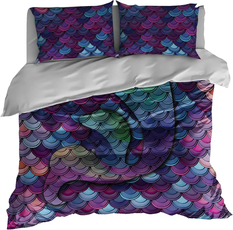Mermaid Scales Duvet Cover, Deep Sea Bedding Set, Colorful Bed Sheets, B-70 (King Set 104"x92")