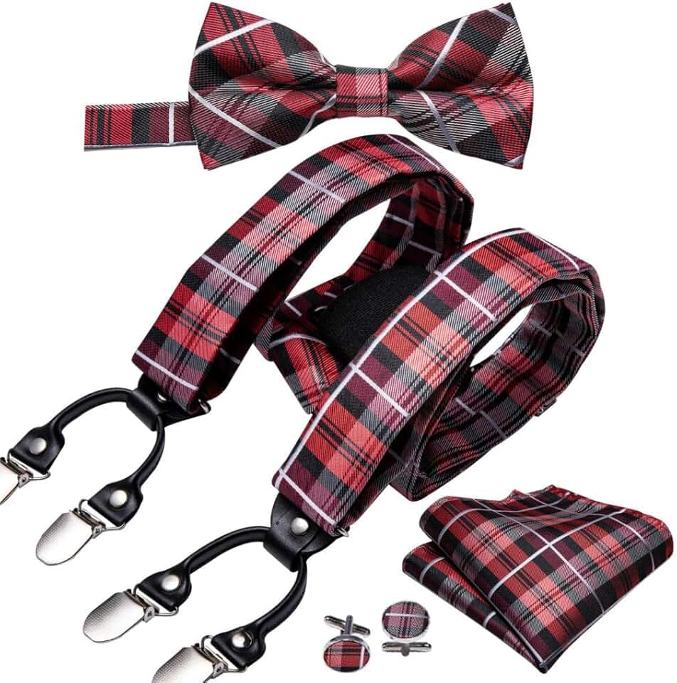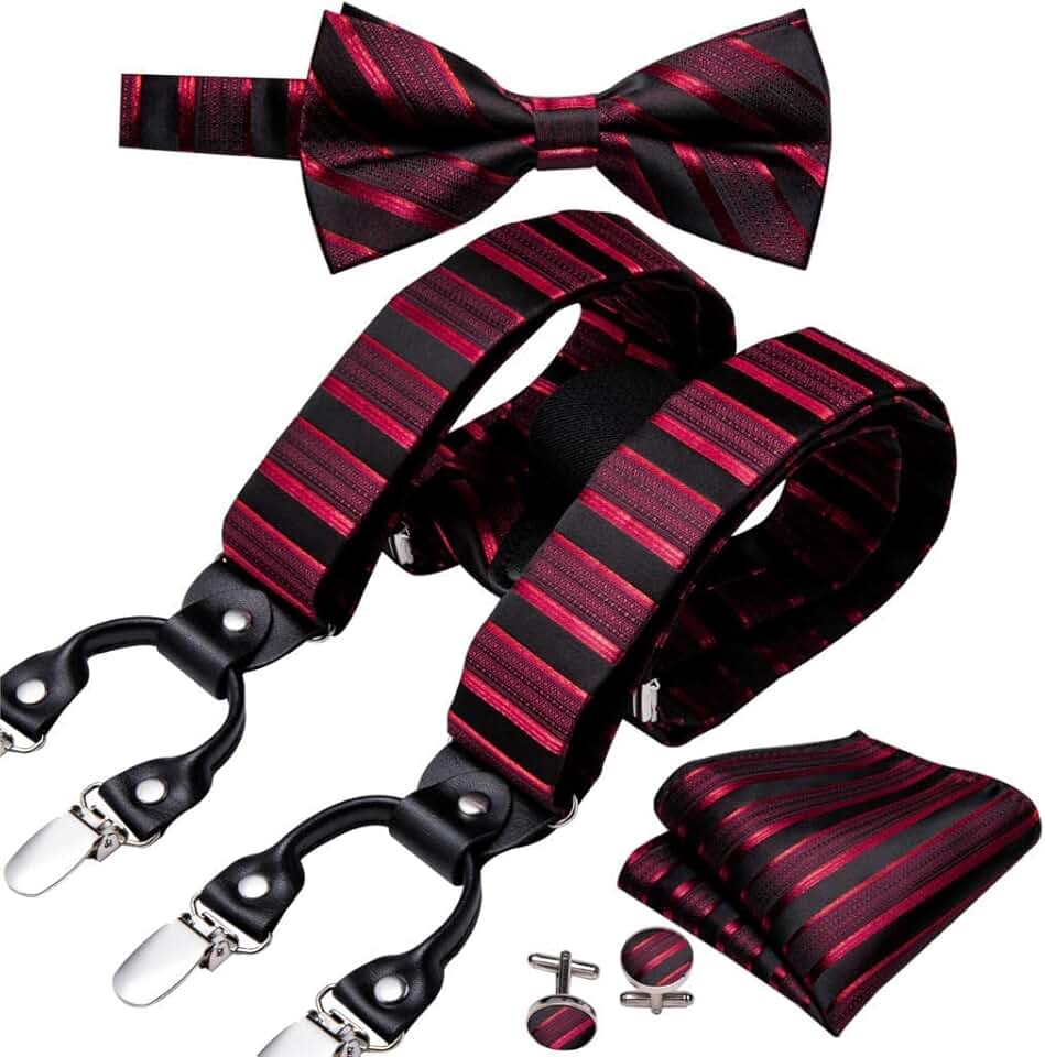 Suspender for Men Silk Bowtie Set Cufflinks Elastic Wedding Suspender 6 Clips Bow Tie for Party