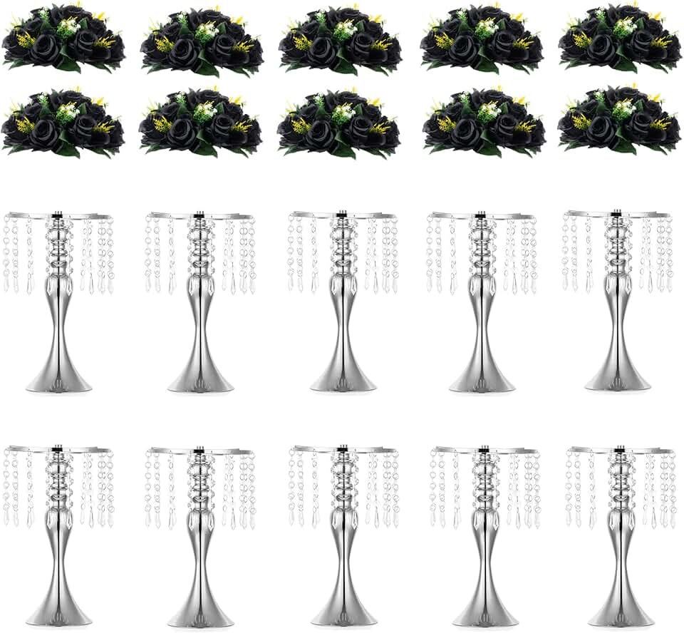 Inweder Wedding Flower Balls for Centerpieces - Artificial Flower Ball Arrangement Bouquet, Fake Flowers Rose Balls for Weddings, Birthday Party, Valentine's Day, Home Decor, Black, 10 Pcs