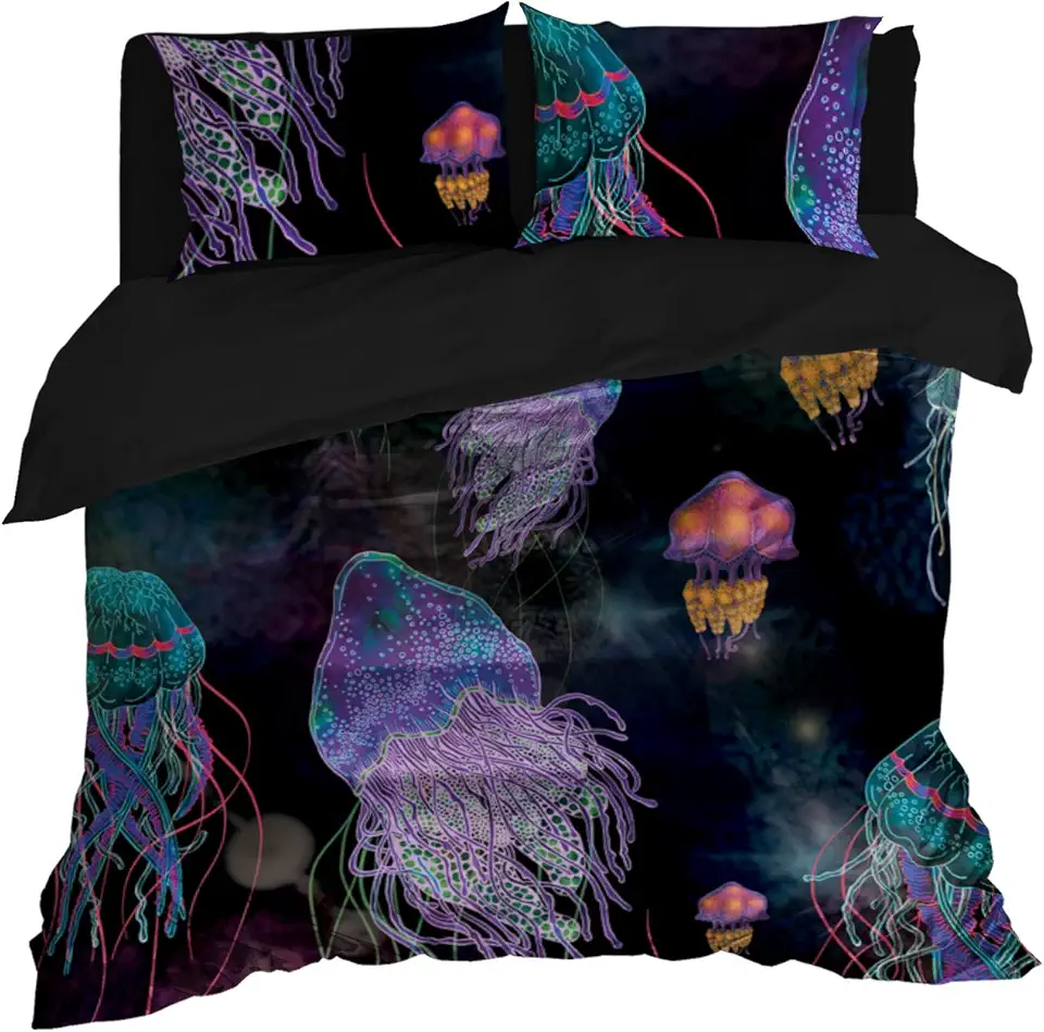 Jellyfish Bedding Set, Deep Sea Duvet Cover, Watercolor Sheet Set, B-119 (King Set 104"x92")