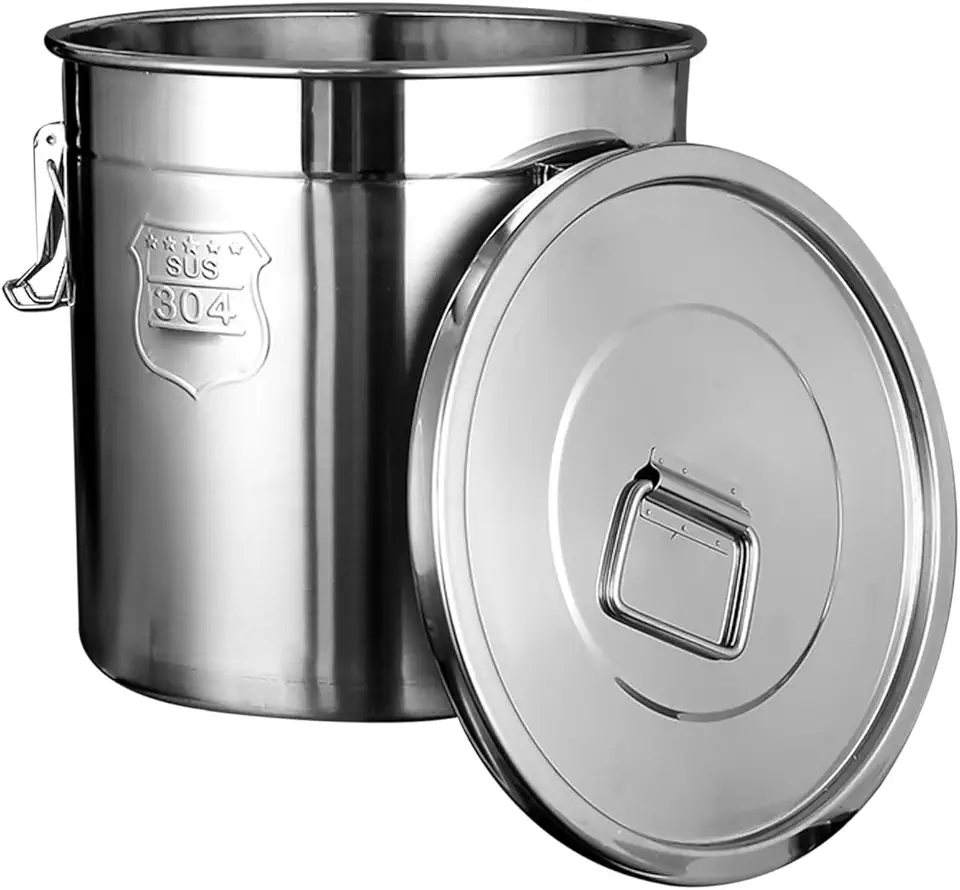 Airtight Storage Canister Sealed Bucket 304 Stainless Steel Sealed Jar with Lid, Soup Bucket Food Storage for Kitchen Restaurant,48L