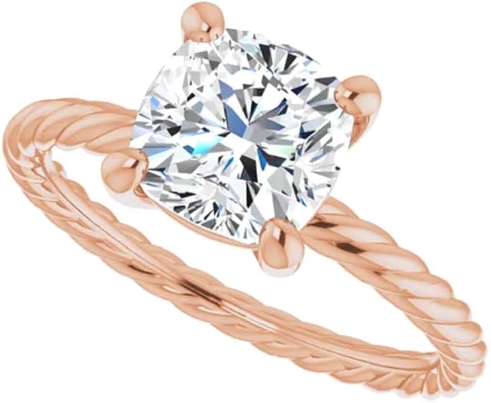 2CT-4CT Cushion Cut Engagement Ring Solitaire Rpoe Moissanite Anniversary Ring for Women Promise Gifts for Her 925 Silver/10K/14K/18K Gold (Rose, 2.5 CT)